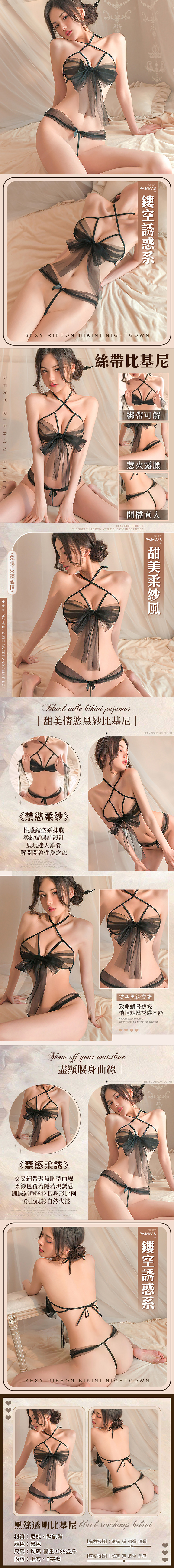商品名稱:KR|黑色絲帶透視比基尼|鏤空性感誘惑款